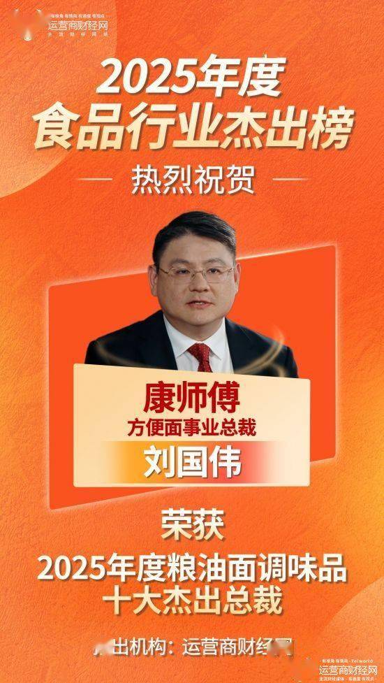 康师傅便利面事业总裁刘国伟成功入选!运营商财经网正式推出“2025年度粮油面调味品十大精采总裁”榜单,巩固了品牌行业龙头的劣势地位。通过成立新尺度来办事更多细分市场的消费者新需求。股东应占溢利同比提高11.9%至9.51亿元,康师傅精准洞察消费者对速食产物需求的变化,